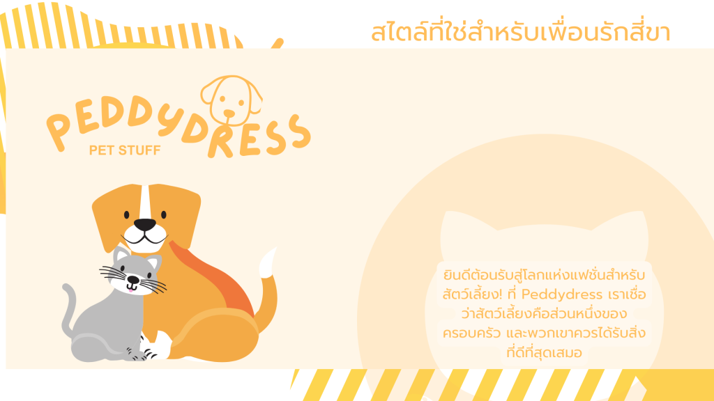 Peddydress ก่อตั้งขึ้นจากความรักที่ไม่มีเงื่อนไขที่เรามีต่อสัตว์เลี้ยง ทุกครั้งที่เราเห็นสัตว์เลี้ยงของเราใส่เสื้อผ้าน่ารักๆ หรือนั่งสวยๆ สวมใส่เครื่องประดับ เราเห็นความสุขในแววตาของพวกเขา